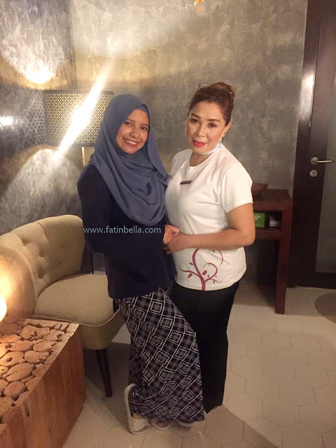 Aten telah memilih rawatan terbaru mereka iaitu Tummy or Thigh Shaper Firming Treatment. Treatment ni memfokuskan untuk mengurangkan lemak di bahagian tertentu mengikut tubuh badan kita. Kak Emelda yang merupakan expert therapist akan massage Aten. Memang semua pakaian kena buka dan pakai tuala dan panties disposable yang disediakan. Kak Emelda kata kat peha dan perut Aten banyak lemak. Jadi, Kak Emelda focus kat bahagian perut dan peha Aten. Tapi kat bahagian lain pun Kak Emelda massage juga. Kak Emelda ni peramah gilaaa. Jadi, Aten takde rasa malu sangat bila tunjukkan badan Aten kat dia. Hehehe. Kak Emelda ni kecik je orangnya tapi padu gila bila dia massage!